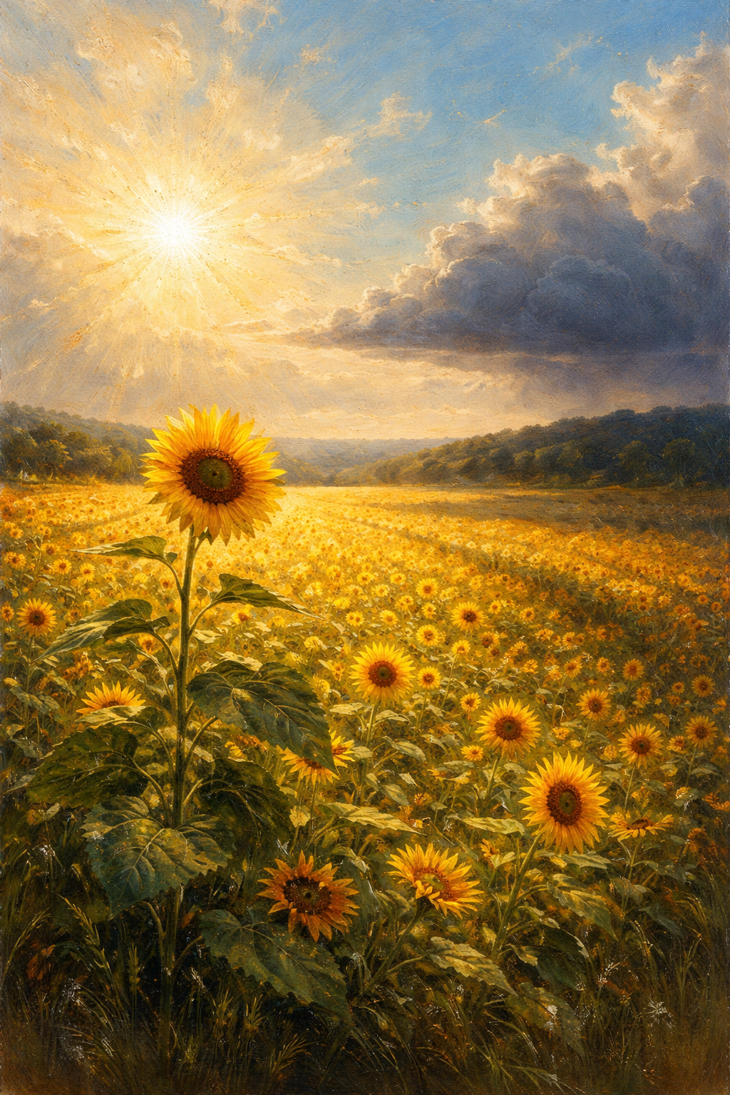 It depicted a sun-drenched field under a vast, hopeful sky. In the foreground, a single sunflower stood taller than all the others, its face turned fully toward the radiant sun, its petals a blaze of cadmium yellow and burnt sienna. But there was something in the brushwork of the stalk, a slight tension, a barely perceptible lean that hinted at a weight the bright face refused to acknowledge.